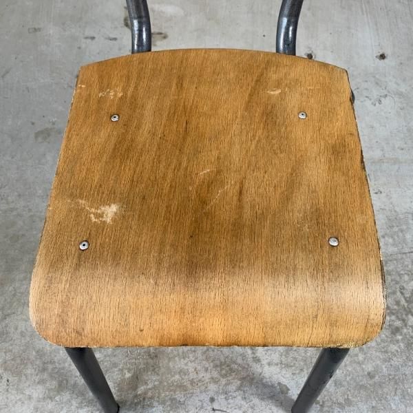 スチールパイプを曲げたようなフレームに、ウッドの座面を組み合わせた、非常に雰囲気のあるチェアです。