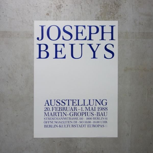 1988年に文化の街ドイツのベルリンにある美術館Martin-Gropius-Bau(マルティン・グロピウス・バウ)で開催された、ドイツの現代美術・彫刻・教育・音楽・社会活動など多岐にわたる活動をしたJoseph Beuys(ヨーゼフ・ボイス)展のポスター。