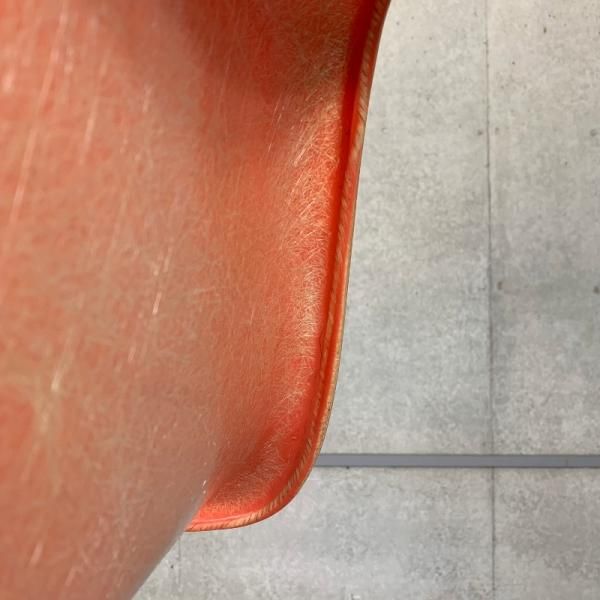 この年代に製造されたシェルチェア特有の綺麗にエイジングされたサーモンピンクカラーが魅力です。