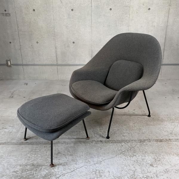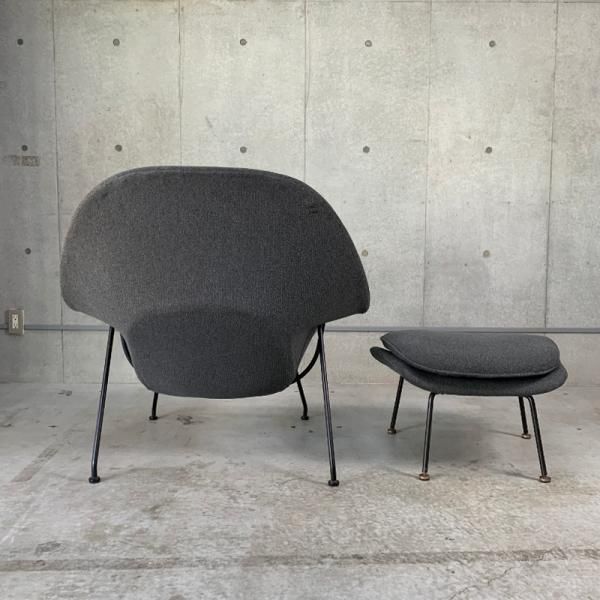 ファブリックに薄い焼けがございます。チェア右前脚に再溶接個所有り。黒く再塗装もされています。オットマンはオリジナルペイントです。グライズには錆があります。