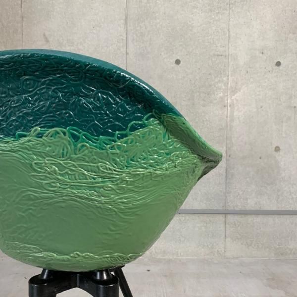 粉末を熱で溶かし、パスタの製麺機のように細いチューブ状になったプラスチック液を、職人の手によって金型へ流し込み成型していく製造技法のため、シェルに現れるユニークな模様は、世界に一つしかないオリジナリティ溢れる表情となります。