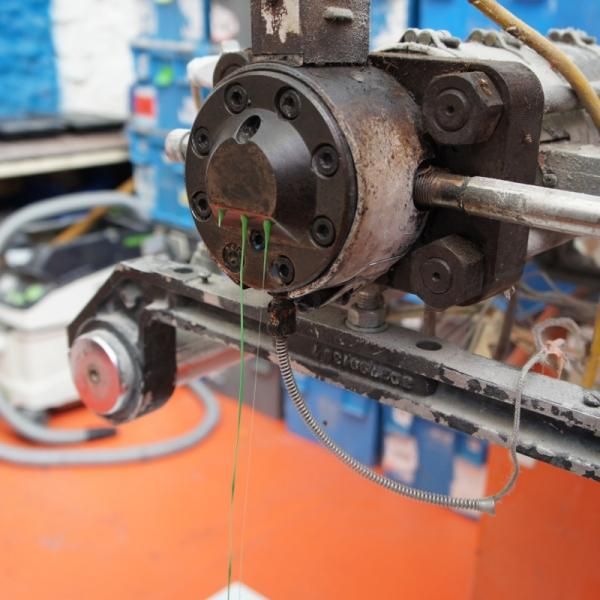 粉末を熱で溶かし、パスタの製麺機のように細いチューブ状になったプラスチック液を、職人の手によって金型へ流し込み成型していく製造技法のため、シェルに現れるユニークな模様は、世界に一つしかないオリジナリティ溢れる表情となります。