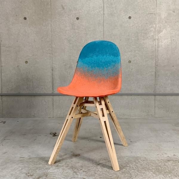 粉末を熱で溶かし、パスタの製麺機のように細いチューブ状になったプラスチック液を、職人の手によって金型へ流し込み成型していく製造技法のため、シェルに現れるユニークな模様は、世界に一つしかないオリジナリティ溢れる表情となります。
