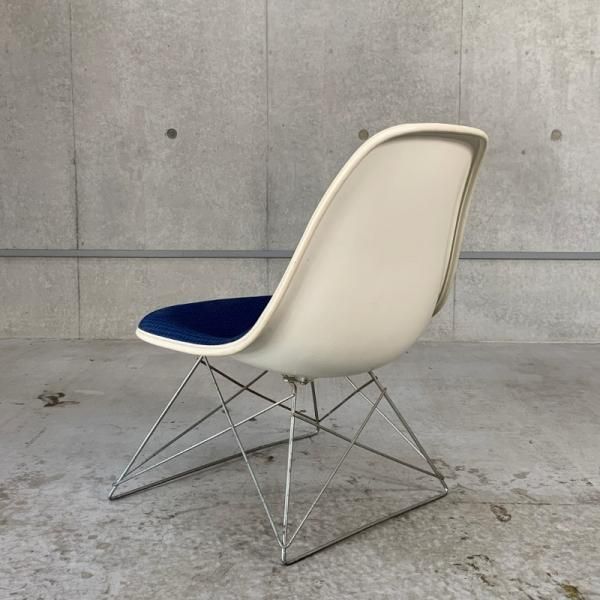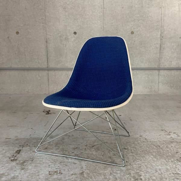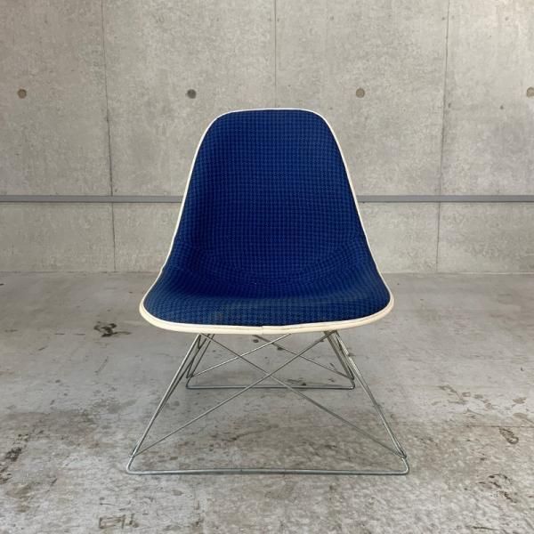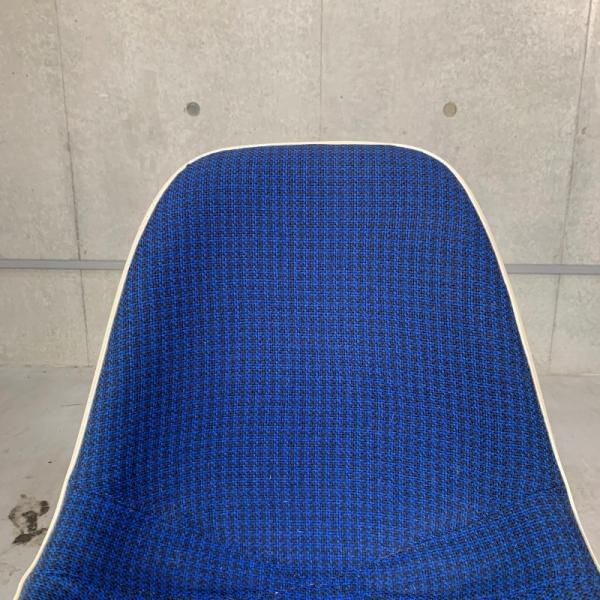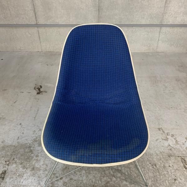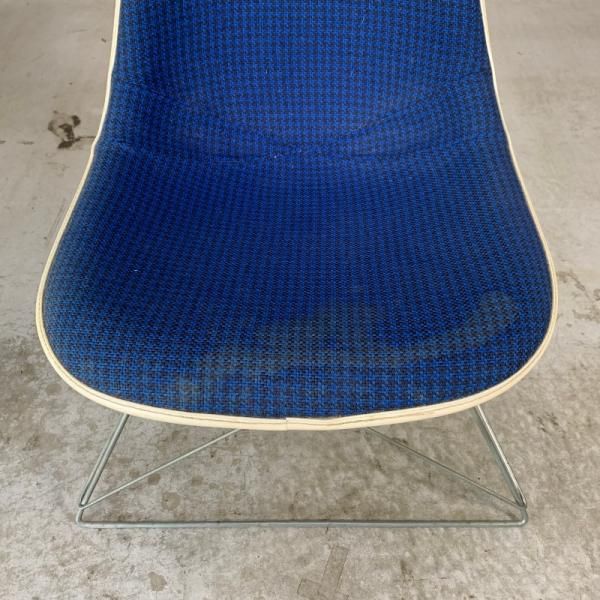アレキサンダー・ジラルドのファブリックで張られたヴィンテージのイームズ・サイドシェルチェアにキャッツクレイドルベースをマウントした1脚です。