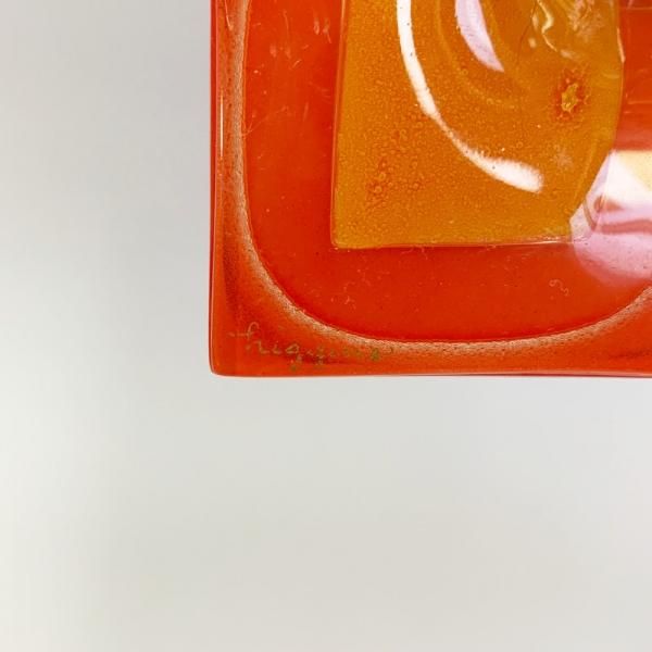 特徴でもあるスランプガラス製法で制作され、2層に仕上げられた事によって、この数ミリの厚さの中に立体感や奥行を感じることができる、ヒギンスならではの表情が魅力です。