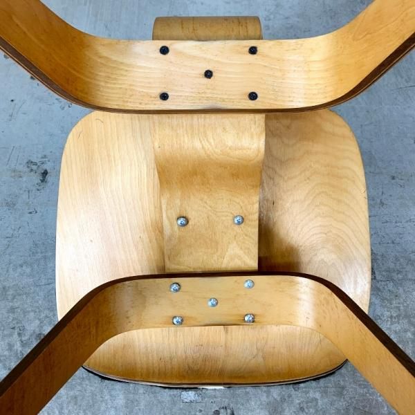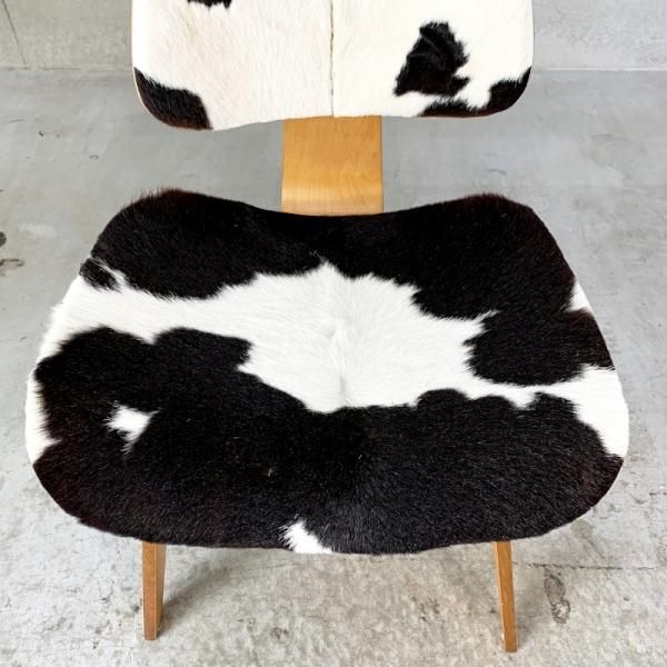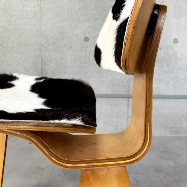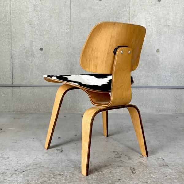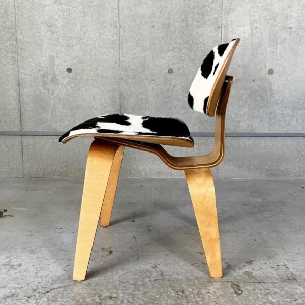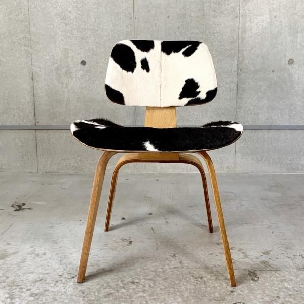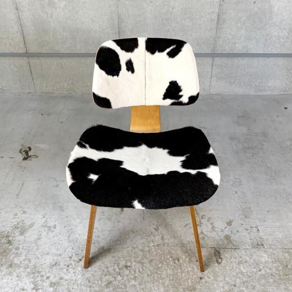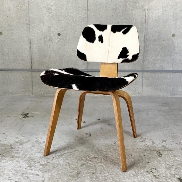 ヴィンテージのハーマンミラー社製のDCW(Dining Chair Wood leg)にカウハイドを張り込んだ1脚。