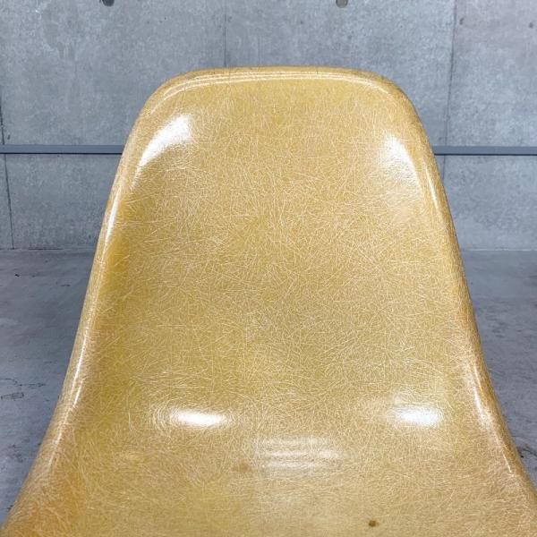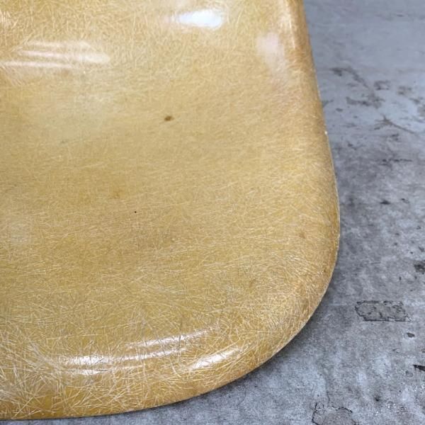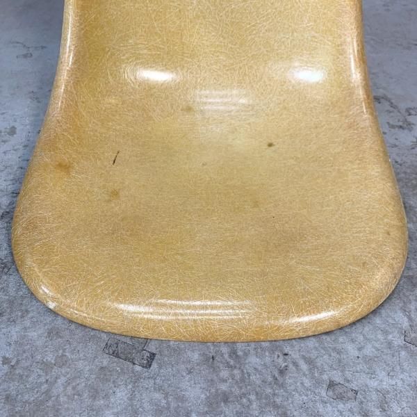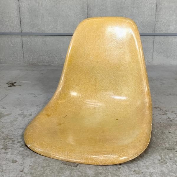 A cream-colored 50's "Parchment Side Shell Chair" with beautiful aging.