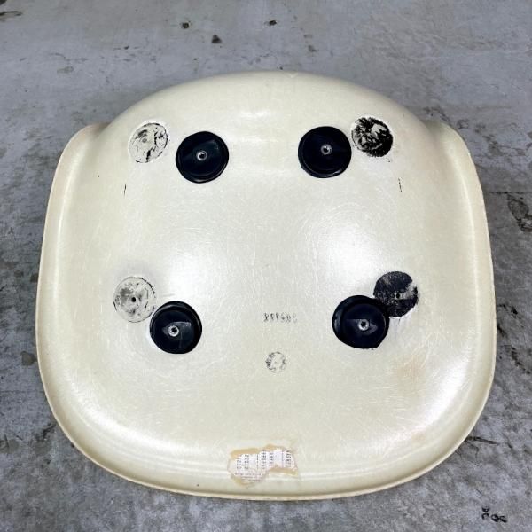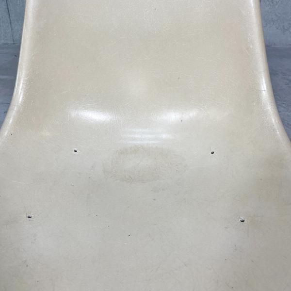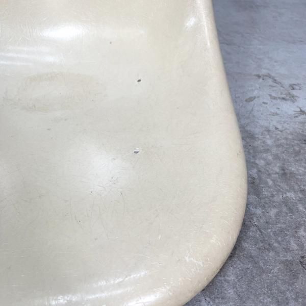 A cream-colored 50's "Parchment Side Shell Chair" with beautiful aging.