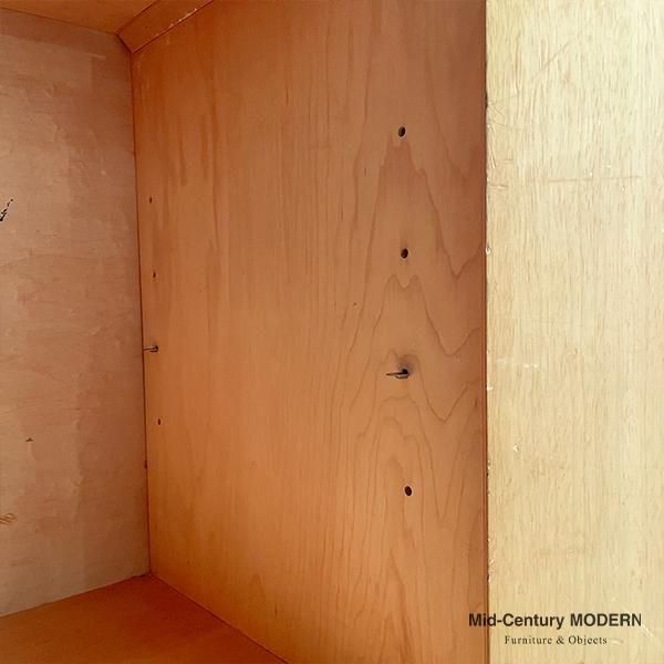内部にはダボ穴(画像16、17枚目参照)が設けられており、棚板の高さを調節可能です。