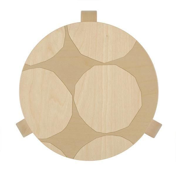 ハサミでカットした円形を基にしており、マイヤ・イソラのアトリエの敷地で拾った大きくて粗い石からインスピレーションを得たといわれています。
